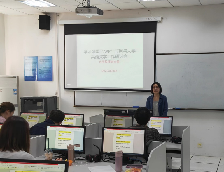 为切实提高教师党员政治理论水平,有序推进党员理论学习教育工作,营造比学赶超的学习氛围, 大英教师党支部于2023年3月9日在外国语学院9324室召开全体党员大会,会议的主要内容围绕如何将“学习强国”APP的学习融入日常的教学工作以及深入探讨大学英语四级教学工作的展开,大学英语教师党支部党员参加了会议,会议由陈银春书记主持。