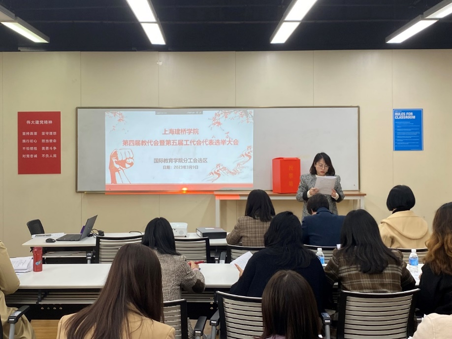 为促进科学治校、民主治校、依法治校,2023年3月9日下午,国际教育学院举行学校第四届教代会暨第五届工代会(简称“双代会”)代表换届选举大会。