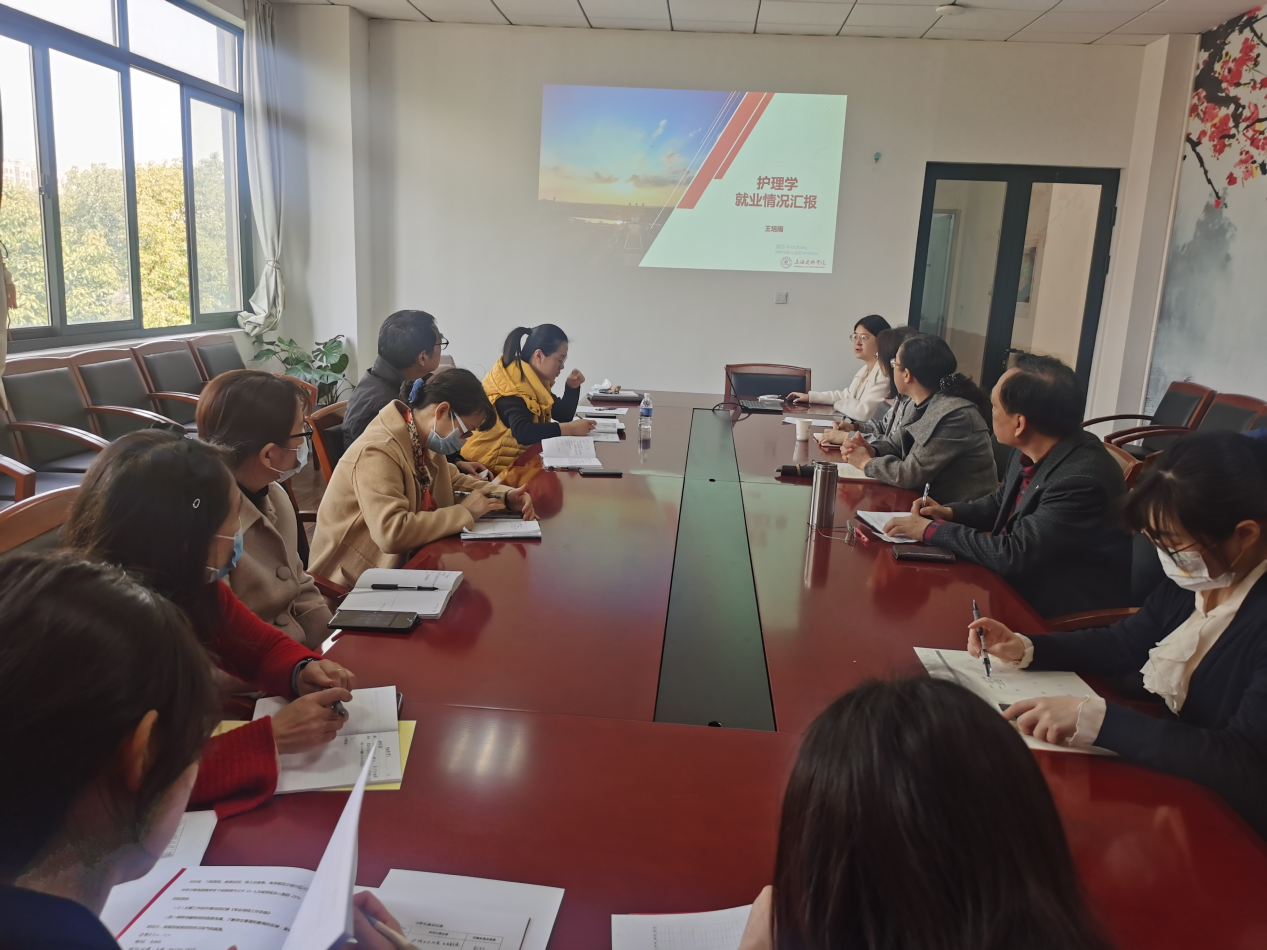 会议伊始,陈海燕书记传达《关于开展2023年访企拓岗促就业专项行动的通知》精神,介绍行动目标和行动内容,强调工作要求。毕业班辅导员就毕业生的生源构成、实习就业情况、就业意向、面临的困境汇报了2023届毕业生整体状况。各医院指导老师分别介绍目前实习学生应聘、就业、签约情况。