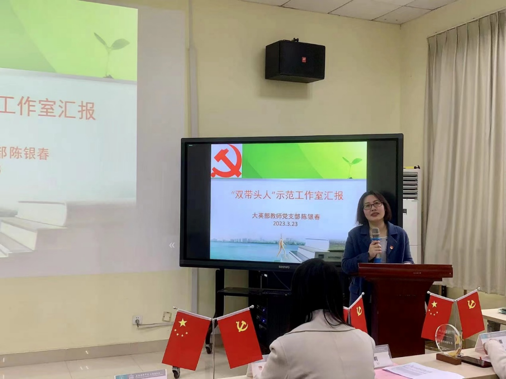 优秀党支部支部书记陈银春同志以“双带头人”示范工作室的建设为主旨做了交流发言。她谈到高校教师党支部是教育、管理、监督和服务教师党员的基本单位,是把党的路线方针政策落实到高校基层的战斗堡垒,是党团结和联系广大教师的桥梁和纽带,是办好中国特色社会主义大学的重要支柱。大学英语教师党支部创新“党建+”工作模式,开展“党建+服务”、“党建+育人”和“党建+科技”专项行动,推动党建与业务深度融合。从“融”字着眼,让党员真正的能融入到大英部的工作当中去,以高质量党建引领高质量发展。
