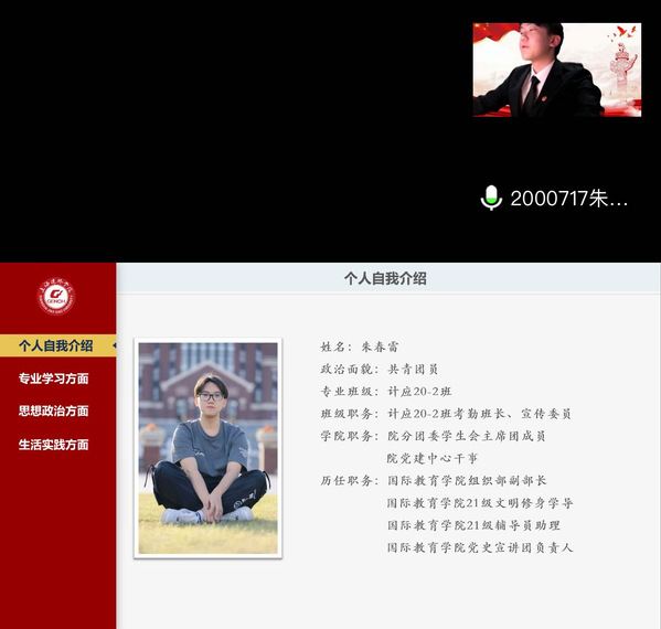 答辩会分为线下一场和线上两场。各位候选人从学业成绩、社会实践、学生工作、所获荣誉以及未来展望等各方面展开答辩。其中,国家奖学金、卓越奖学金、清云奖学金获得者裘伟杰同学作为班长,学习成绩优异,多次荣获优秀学生干部以及其他各项奖学金和荣誉,现在正在提塞德大学攻读硕士学位。吴宇同学广泛参与学校的各项实践活动,顺利通过大学四六级以及雅思考试,毕业之后将去往悉尼大学攻读硕士研究生。作为国际教育学院的毕业生,本身有着出国留学的专业优势,史宇航、朱春雷等多位候选人都已经确定毕业之后去往日本京都情报大学院大学攻读硕士学位。何赟龙、陈杨等几位候选人已经与东方航空技术有限公司签订就业协议书。