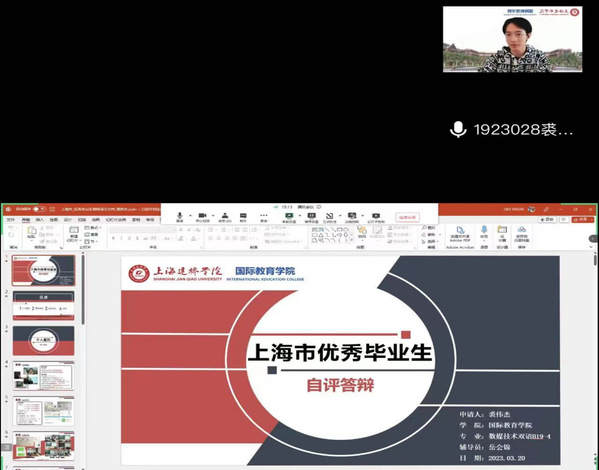 答辩会伊始,答辩会主持人刘志霞老师简要介绍了2023年度上海市普通高等学校优秀毕业生和上海建桥学院优秀毕业生的评选程序以及答辩的流程,也介绍了前期准备工作。