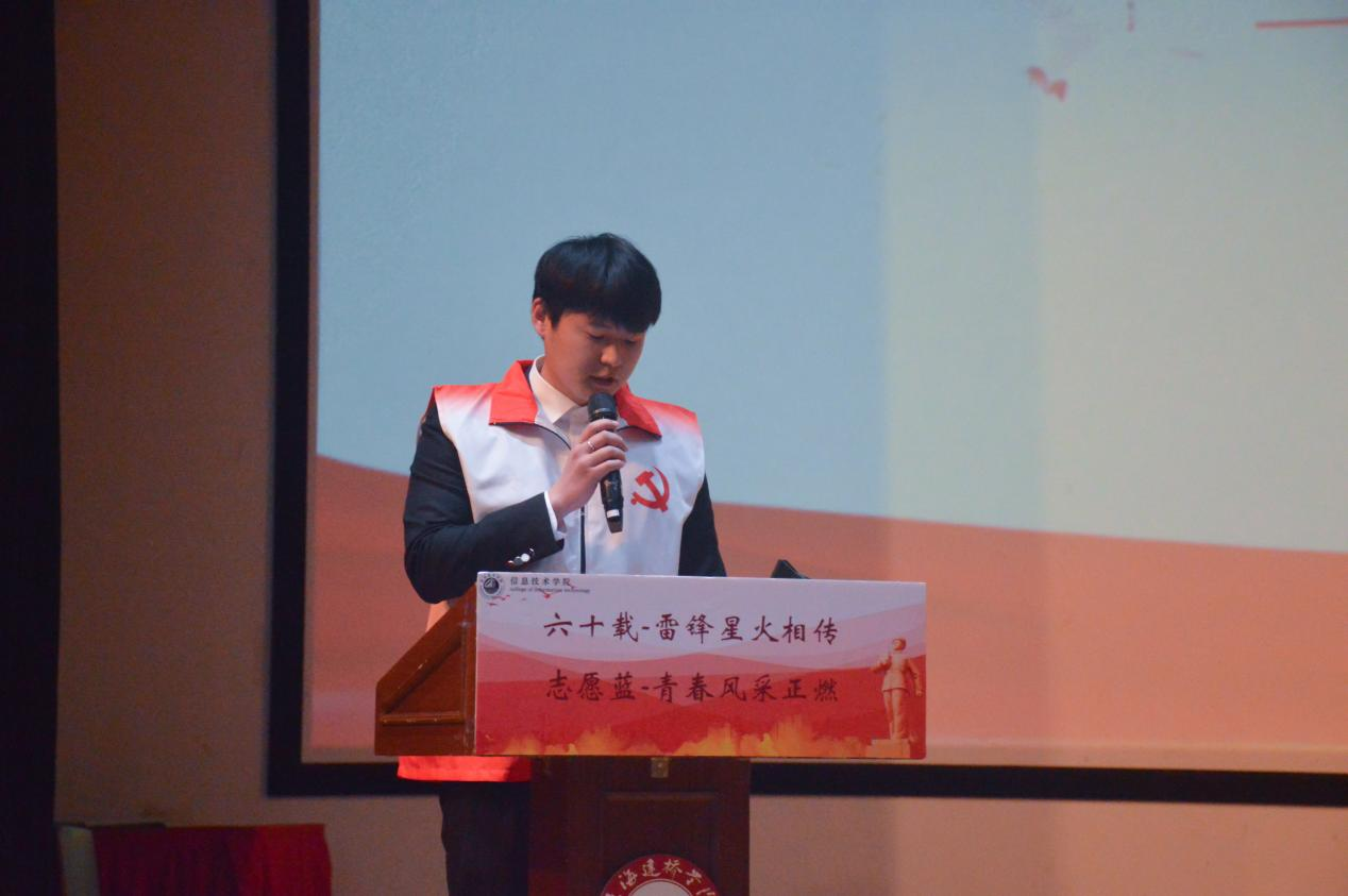 三月春风暖人心,雷锋精神伴我行。信息技术学院“六十载雷锋星火相传 志愿蓝青春风采正燃”雷锋月系列活动总结大会暨志愿者表彰大会于2023年3月30日下午在大礼堂顺利举行,本次大会由信息技术学院团委书记高智博老师主持。