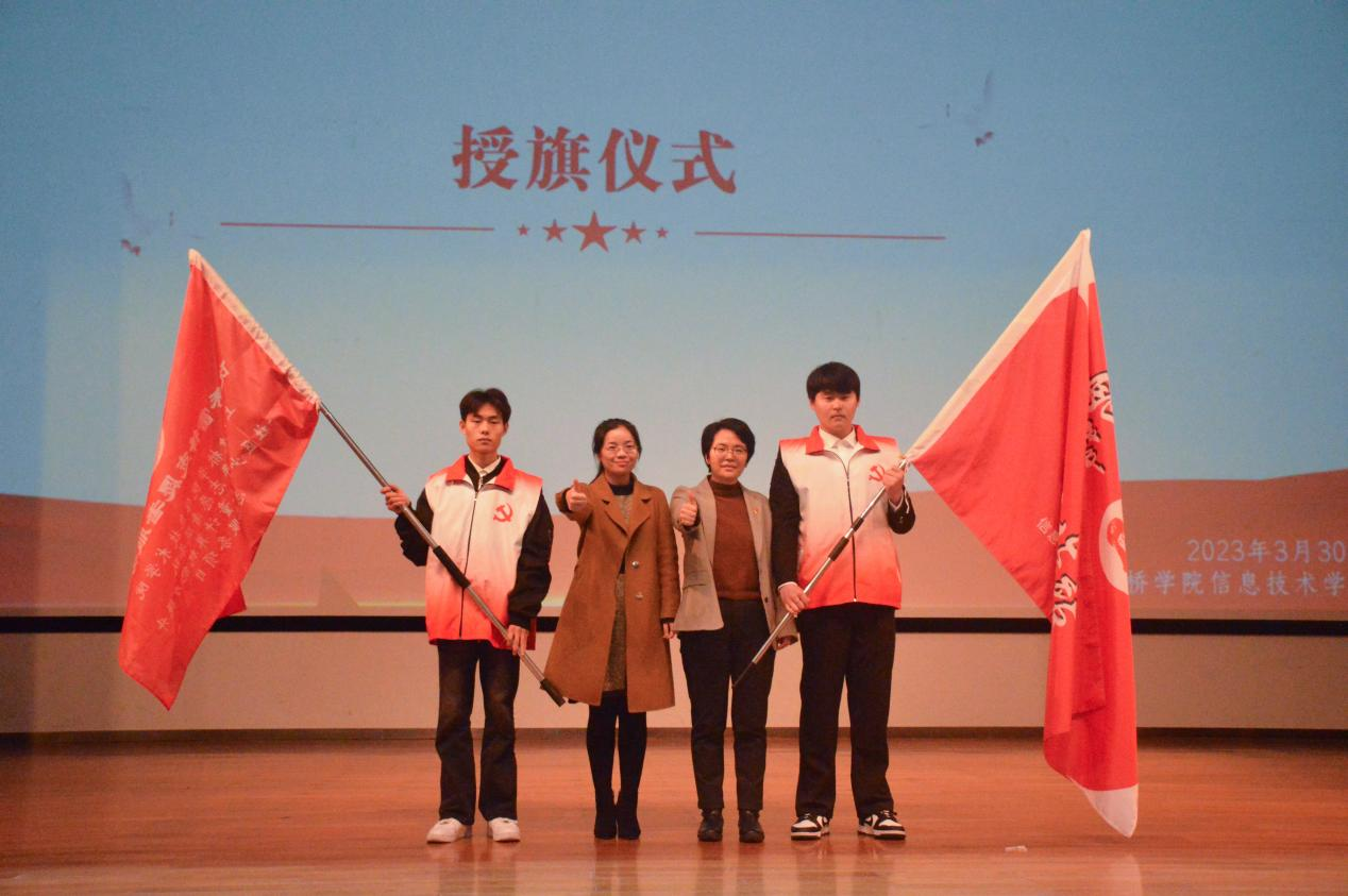 最后,校学生处副处长、团委书记高雅和院党委副书记徐娜为信息技术学院特色志愿者团队授旗,学雷锋工作站各小分队指导老师为各小分队授旗。希望各志愿者团队都能以旗帜为指引,继续彰显信息学子的责任感、使命感和担当精神。
