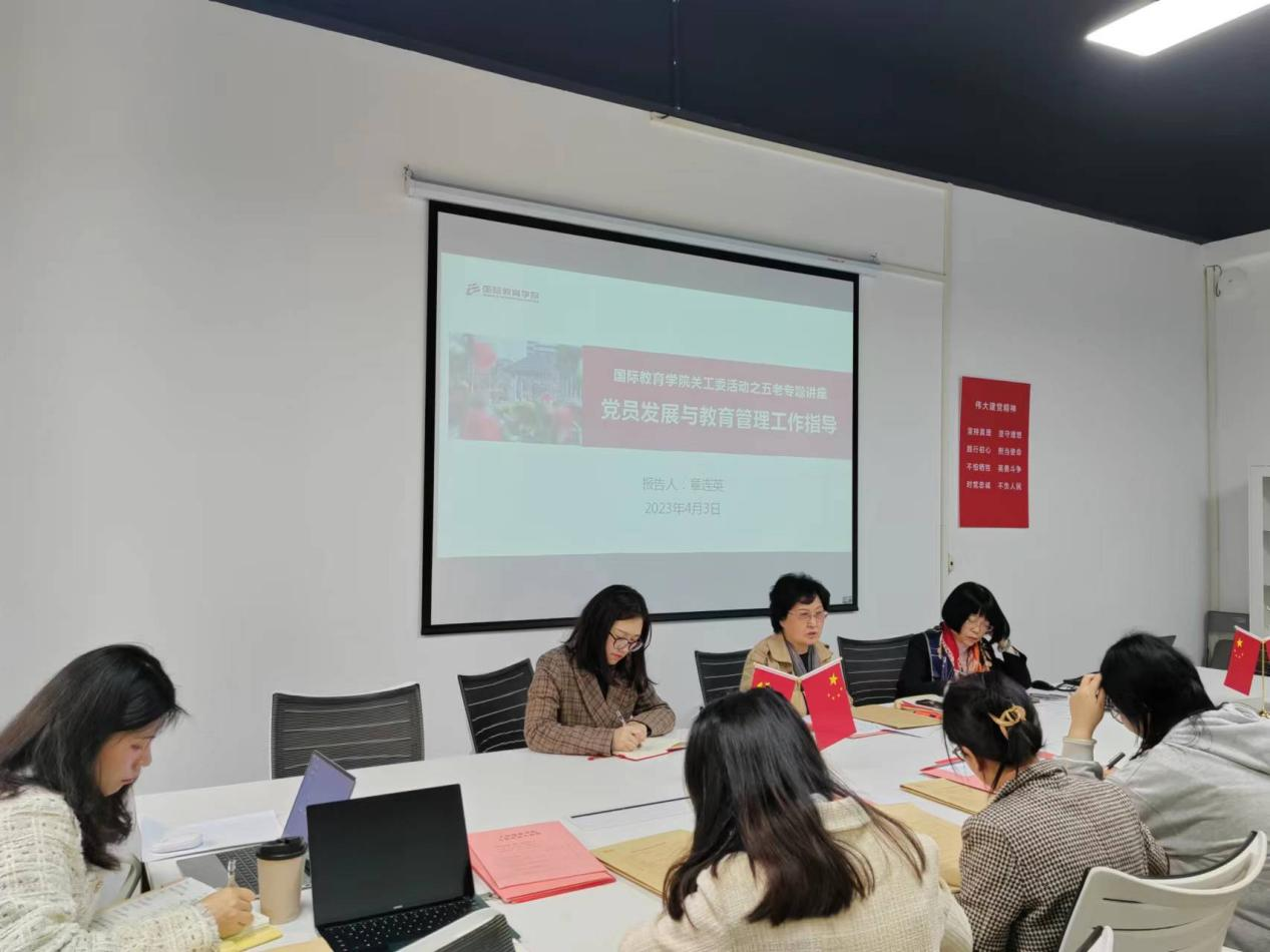 为进一步规范发展党员工作程序和要求,保证新发展党员质量,4月3日上午,国际教育学院关工委发挥“五老”的经验优势,邀请信息技术学院党委组织员章连英老师,在学院209会议室举办关工委活动之“五老”专题讲座——党员发展与教育管理工作指导,对青年教师形成“传帮带”,助力青年教师提升育人能力。我院党总支书记周英芬、副书记高祺和全体辅导员参会,会议由周英芬书记主持。