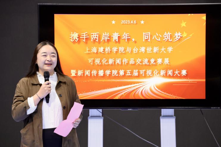 2023年4月6日下午,“新时代·新发展·新愿景”上海建桥学院与台湾世新大学可视化新闻作品交流竞赛展暨新闻传播学院第五届可视化新闻大赛在学院四楼多媒体演播厅举行。新闻传播学院领导、多位系主任及新闻系全体教师在现场进行了观摩和点评。