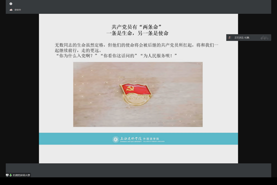 2023年4月5日,外国语学院进行了第24期入党积极分子培训班专题党课第一讲《入党的条件和发展的标准》。本次专题党课由学院党委书记杜鹃作为主讲人,她分别从“什么样的人才能加入中国共产党”“共产党员的基本标准”“党员的权利和义务”“怎样在思想和行动上入党”和“发展党员的方针和原则”五个方面为学员们进行讲解。