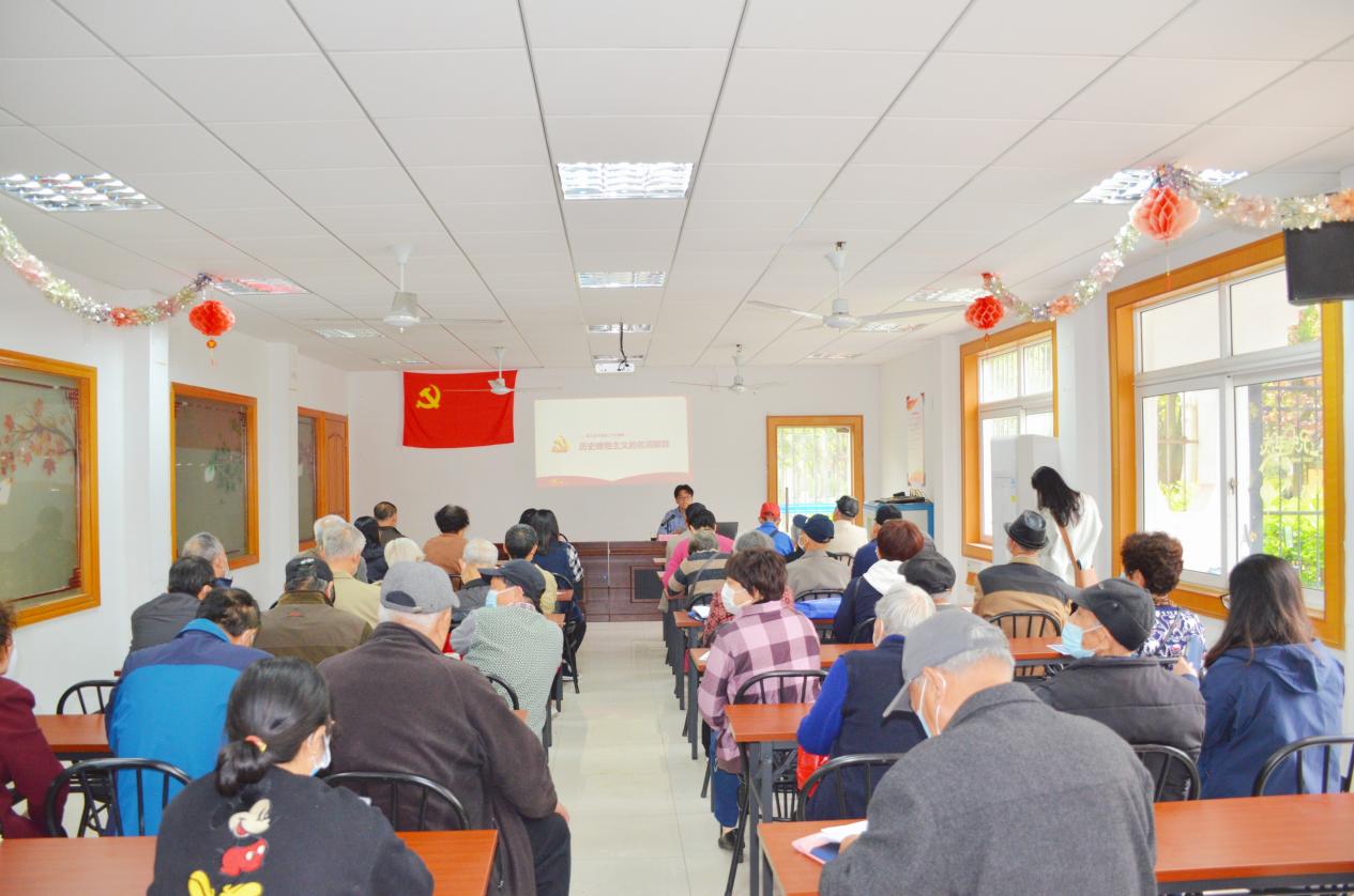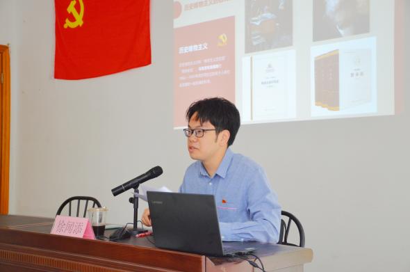 什么是历史?什么是历史唯物主义?宣讲开始,徐闻添向在座的老党员们提出问题,各位党员积极踊跃回答。徐闻添随后解释道,“历史是一个总称,涉及过去的事件以及记忆,发现,收集,组织,介绍,以及关于这些事件的信息解读”。对于历史唯物主义,徐闻添通过三分钟的短片详细介绍。所谓历史唯物主义就是中国共产党取得中国革命、建设和改革胜利的重要世界观和方法论。