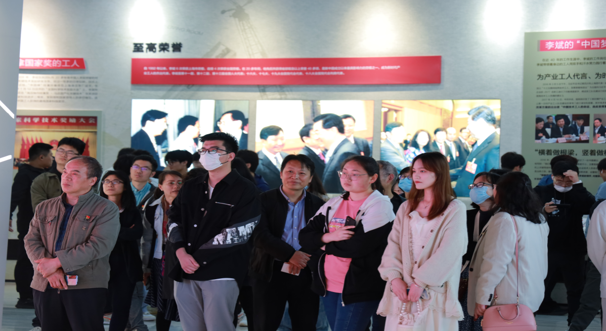 紧接着大家参观了全国著名劳动模范李斌展示馆。展馆分“产业工人颂”、“光辉旗帜”、“时代先锋”、“工人李斌”、“李斌效应”、“匠心聚气”六大展区,全方位展示了以李斌同志为代表的上海电气劳模工匠的群体形象。通过对于李斌群体劳模感人至深、催人奋进故事的观摩学习,师生们得出了一个重要结论,上海电气之所以能有今天辉煌成就,不就是一线工人用智慧和汗水拼搏出来的吗?不就是一个个像李斌那样的劳模善于创新敢于攻关创造出来的吗?工匠精神就是上海电气辉煌成就的精神密码。