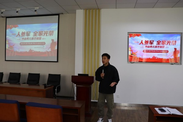 首先,刘伟山老师对商学院报名参军的学生给予一定的肯定和鼓励,认为他们报名参军入伍是一件令人崇敬的事情,同时讲述了关于大学生从学校走兵一些优待政策,学院党委的支持与帮助等;积极动员我院大学生应征入伍,激发学生的参军热情,大学生征兵入伍既是国家发展的需要,也是大学生自我成才的需要。