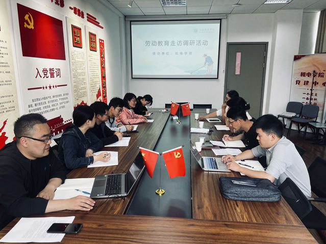 5月5日下午,副校长陈伟带领学生处副处长张莉,赵杰专家与邵于豪老师一行到机电学院针对《劳动教育》课程的开展情况进行走访,机电学院党委书记吴国政,副书记马秀娟,学院劳动教育课程教师参加了本次座谈会。