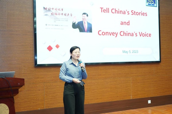 (图为新闻传播学院曹茶香老师在进行教学展示)