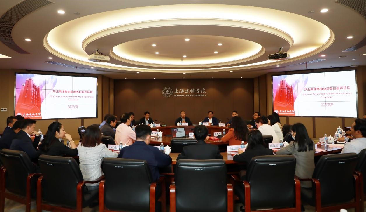 2023年5月8日,由柬埔寨20余名商务部官员组成的“柬埔寨电子商务与数字经济研修班”到访上海建桥学院,深入了解中国上海高校产教融合的发展成果。该援外培训项目由中国商务部主办、上海亚太地区经济和信息化人才培训中心承办。