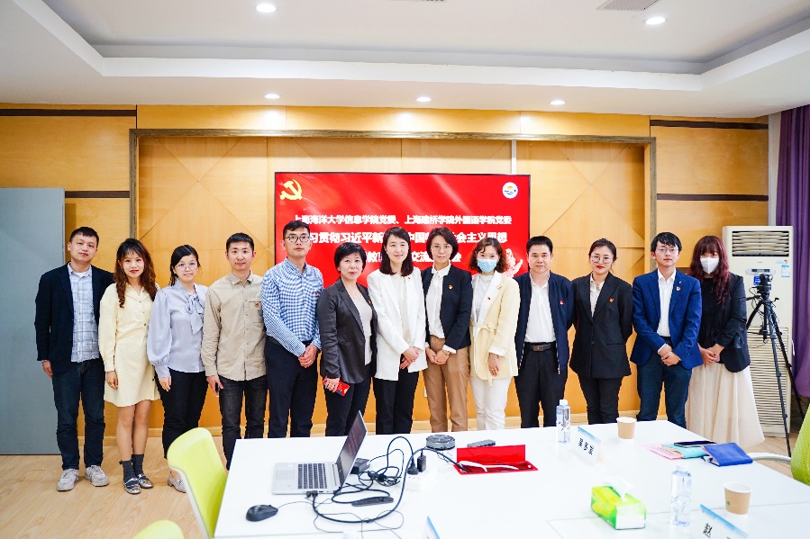 5月17日下午,为深入学习贯彻习近平新时代中国特色社会主义思想,牢牢把握主题教育“学思想、强党性、重实践、建新功”的总要求,坚持主题教育与推动学院高质量发展相结合,进一步推动主题教育走深走实。上海建桥学院外国语学院党委书记杜鹃带领院党委副书记伊莉、院党委组织委员刘沛雨、院党委宣传委员朱心怡、院党委学生党支部书记尹洁、赵磊、吴多发一行人赴上海海洋大学信息学院党委开展主题教育调研交流座谈会。上海海洋大学信息学院党委书记程彦楠、院党委副书记李杰,院党委组织员裴丽娜以及学生党支部书记代表吴兴识、王天舒、周超参加了此次调研座谈会。座谈会由上海海洋大学信息学院党委书记程彦楠主持。