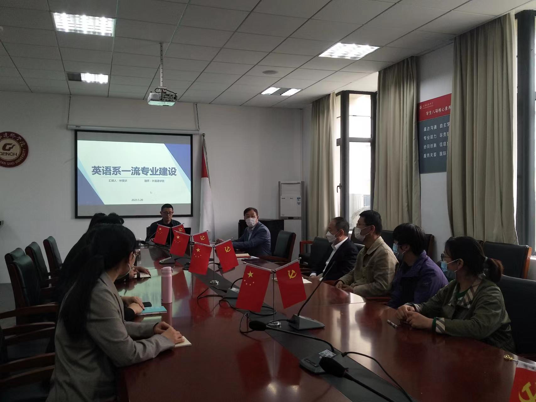 5月24日下午,外院在229会议室召开了英语系一流专业建设研讨会,学院院长毛立群、党委书记杜鹃、副院长王海燕和英语系一流专业建设团队成员,会议由英语系主任林安洪主持。