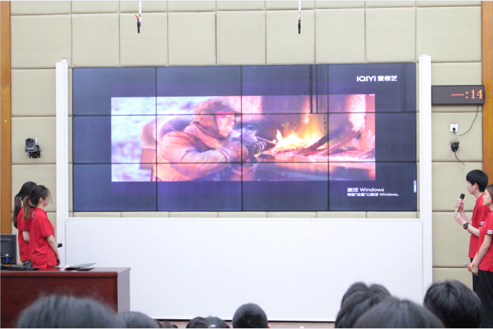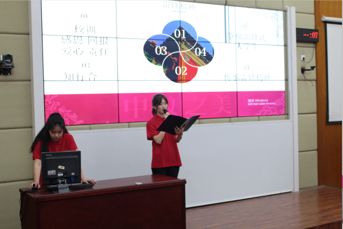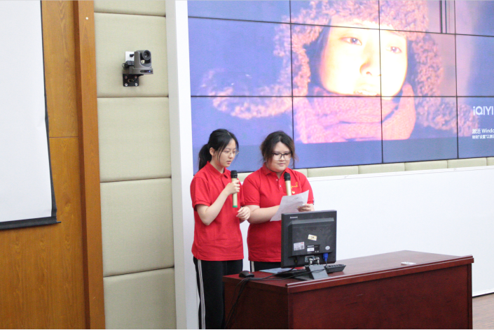 当师生们还沉浸在配音比赛的感动和感悟中,国际教育学院学生党支部的师生们带来了一首《永远的旗帜,永远的中国梦》诗朗诵,以此勉励在座所有师生定国安邦的远大梦想由你我,由千千万万的中国人共筑,我辈应听党话、跟党走,用吾辈之青春吹响新时代号角,共筑中国梦。