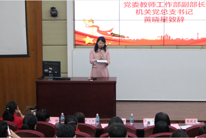 活动开始,人事组织处副处长、党委教师工作部副部长、机关党总支书记黄晓星致辞。黄晓星谈到建设中国特色社会主义教育强国的目的就是培养一代又一代德智体美劳全面发展的社会主义建设者和接班人,各级党组织要通过各种行之有效的方式,组织老师和学生深入学习习近平新时代中国特色社会主义思想和党的二十大精神,不断加强师生的思想政治工作,发挥基层党组织在政治引领和凝聚师生、增加组织活力的作用。伟大建党精神是中国共产党精神谱系的源头,是中国共产党百年光辉历史的全面总结,是中国共产党的精神谱系的高度凝练,也是新时代中国共产党人继续砥砺前行的强大动力。她对国际教育学院学习和宣传伟大建党精神系列活动表示了认可和肯定,并希望国际教育学院在学习伟大建党精神的基础上,不断提高师生的思想道德水平,建立一支高质量的师资队伍,培养一批又一批高质量的学生,把党建的政治优势和组织优势转化为推动学院高质量发展的优势。