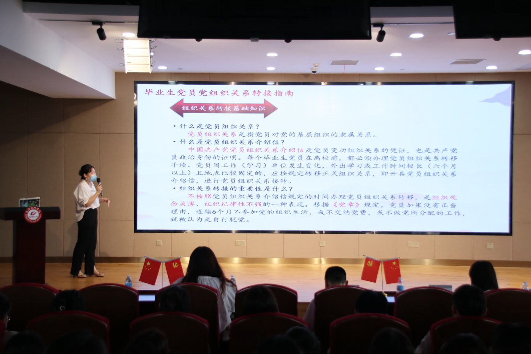 为了帮助毕业生党员妥善完成组织关系转接,学院党委组织委员刘沛雨老师结合相关规定和工作实际,从党员组织关系的转接概念、转接流程、转接去向、转接方式等方面,为广大毕业生党员系统介绍了毕业生党员组织关系转接事宜, 并对党组织关系介绍信、党员管理系统等重点环节进行了细致解答。