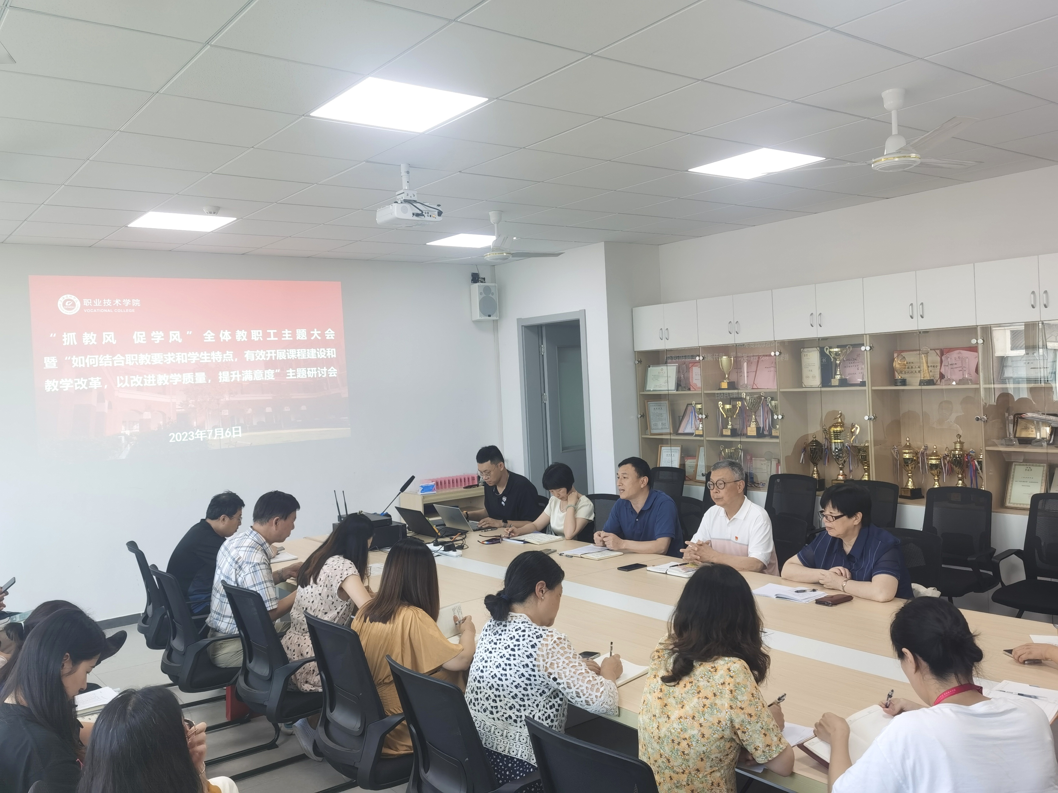 7月6日—7日,为期两天的2023年教育教学工作大讨论在我校举行。活动以“质量核心、教学中心、学生本位、教师主体”为主题,通过在全校范围深入开展大讨论,进一步把全体教职工思想、认识和行动高度统一到落实立德树人根本任务和切实提高本科教学质量要求上,把握新一轮本科教育教学审核评估新要求,加强对新修订“八项核心素养”的掌握运用,有效推进学校“十四五”期间教学改革和内涵建设工作,持续提升教育教学工作能力和水平。活动包括全校教职工大会、全校大讨论活动、第六届“教学节”闭幕式三部分内容。全体校领导,各二级学院、职能部门负责人,全体专职教师和行政人员等参加大讨论。朱瑞庭校长主持会议。