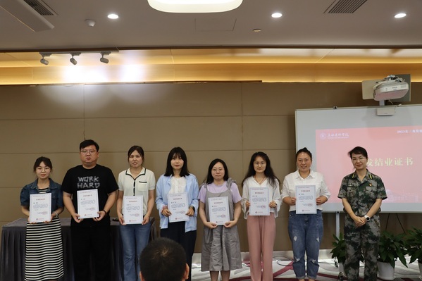 最后,培训结束,进行结业仪式。结业仪式由学生处副处长王苇主持。上海市民办高校党工委副书记、办公室主任江鸿波和学校副校长陈伟教授参加结业仪式。陈伟为线下学员颁发结业证书,江鸿波为优秀学员颁发荣誉证书。线上学员闽南科技学院辅导员康梓棋、上海视觉艺术学院辅导员孙晓婷和上海建桥学院辅导员宋莹作为代表分享学习体会。最后,江鸿波讲话,他强调,第一,辅导员要明确自己的岗位职责和作用,做好知识传承和价值引领两方面的工作;第二,辅导员要做一行爱一行,专一行,不断学习,走专业化发展道路;第三,辅导员要看到自己工作的价值,发现辅导员工作的喜悦和幸福。