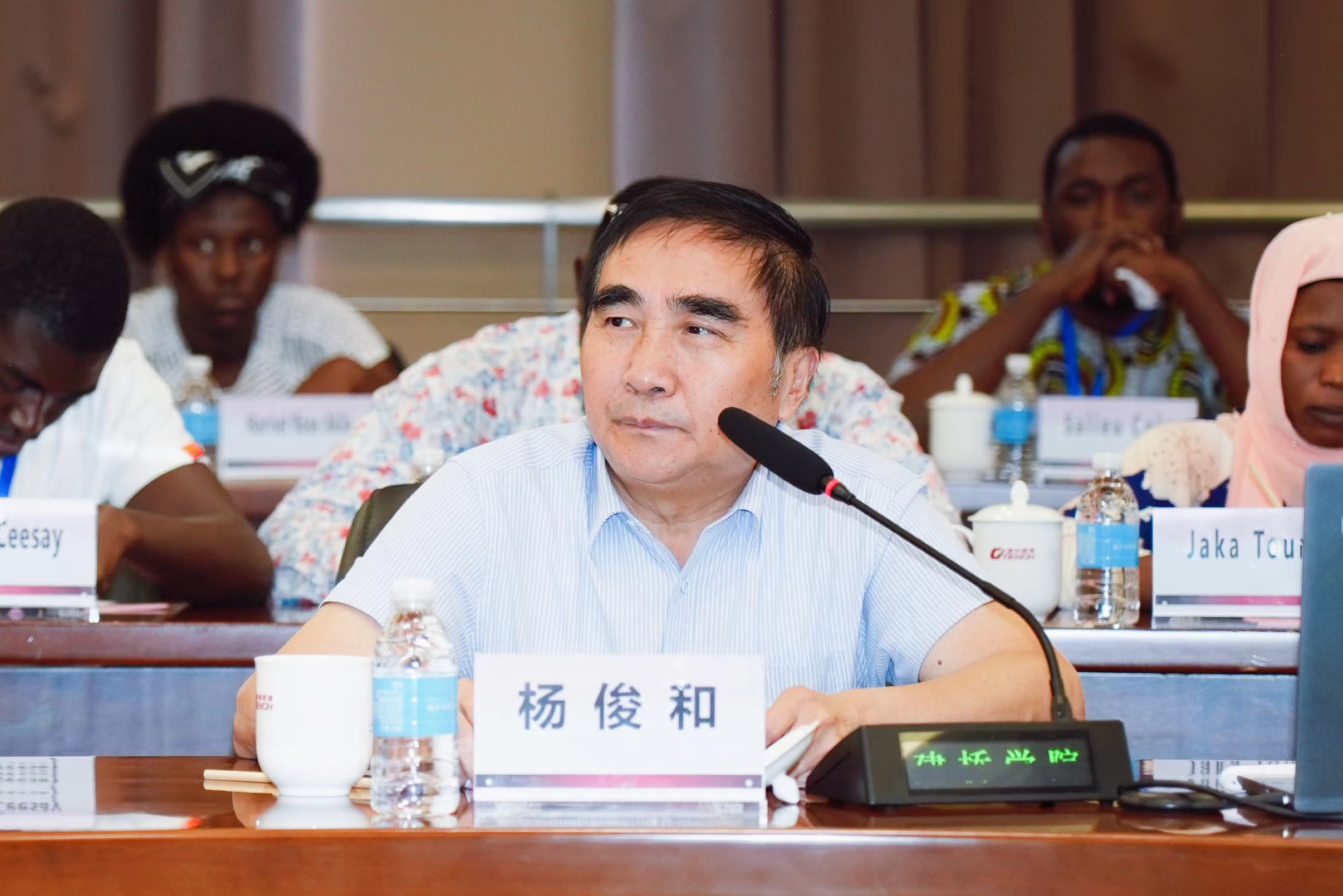 座谈会上,杨俊和副校长对冈比亚客人们的到来表示热烈欢迎,并就学校的办学历程、办学理念、办学规模、专业建设、产教融合与校企协同、“十四五”主要目标和重大任务等作了交流。现场嘉宾积极发言提问,杨校长均给予详细解答。学员们对“云中建桥”的建设及构想非常感兴趣,杨校长表示“云中建桥”已建设一年,正按照三步走的计划推进中。一是建设教学楼、图书馆、实验室、企业教学设备和场所等完整的云中教学体系,教师和学生可通过登录云账号参与教学和模拟仿真做实验;二是逐步实施教师云中阅卷和成绩评价,学生云中测试考核等;三是建设云中管理体系,如学生课堂表现监控管理、师生互动等。随着人工智能、信息技术、虚拟仿真、VR、AR、HR等快速推动,新的大学形态一定会飞速构成。学员们对来华来校留学也表现出很高的兴趣,杨校长介绍了学校的国际学生情况,并表示学校将不断探索进一步扩大在校国际学生规模和专业面向,招收更多来自一带一路沿线国家留学生。在回应学员有关产教融合课程设置及学生就业的问题,杨校长指出校企合作从解决学生实习就业问题发展到产教融合,充分体现出应用型高校“引企入校,引校入企”的双向交叉融合。学校和企业共同制定专业培养方案,共同承担教育教学和实验实践活动,在这样的模式下真正实现学生“毕业即就业,上岗即上手”。