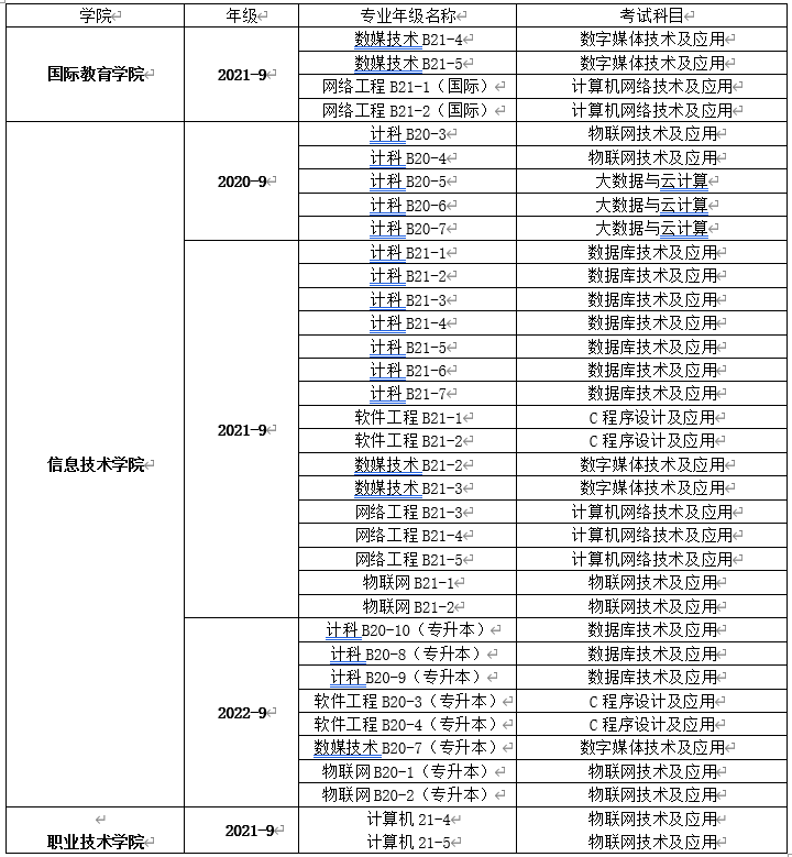 根据我校的教学特点,限定以下专业班级学生的考试为集体报名方式进行(以下专业班级不参加自愿报名,由学校统一提交报名资料)。具体情况如下: