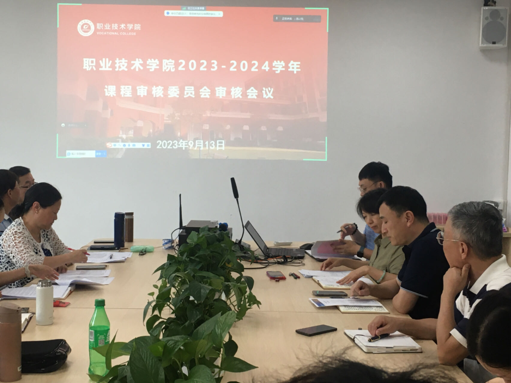 9月13日下午,职业技术学院在419会议室召开2023-2024学年课程审核委员会审核会议。会议由职业技术学院副院长陈莲君主持,职业技术学院院长谷伟、党委书记王加宁以及课程审核委员会全体成员参加了此次会议。