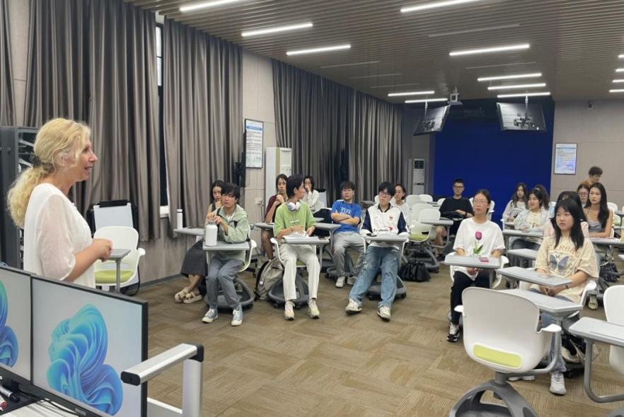 9月15日下午,外国语学院国际事务英语微专业在学院410虚拟仿真智慧教室正式开课,该课程是由加拿大籍教师Nancy主讲的《国际事务英语口语》,来自全校各个学院的20余名学生作为本届微专业首批学员参加了本次授课。