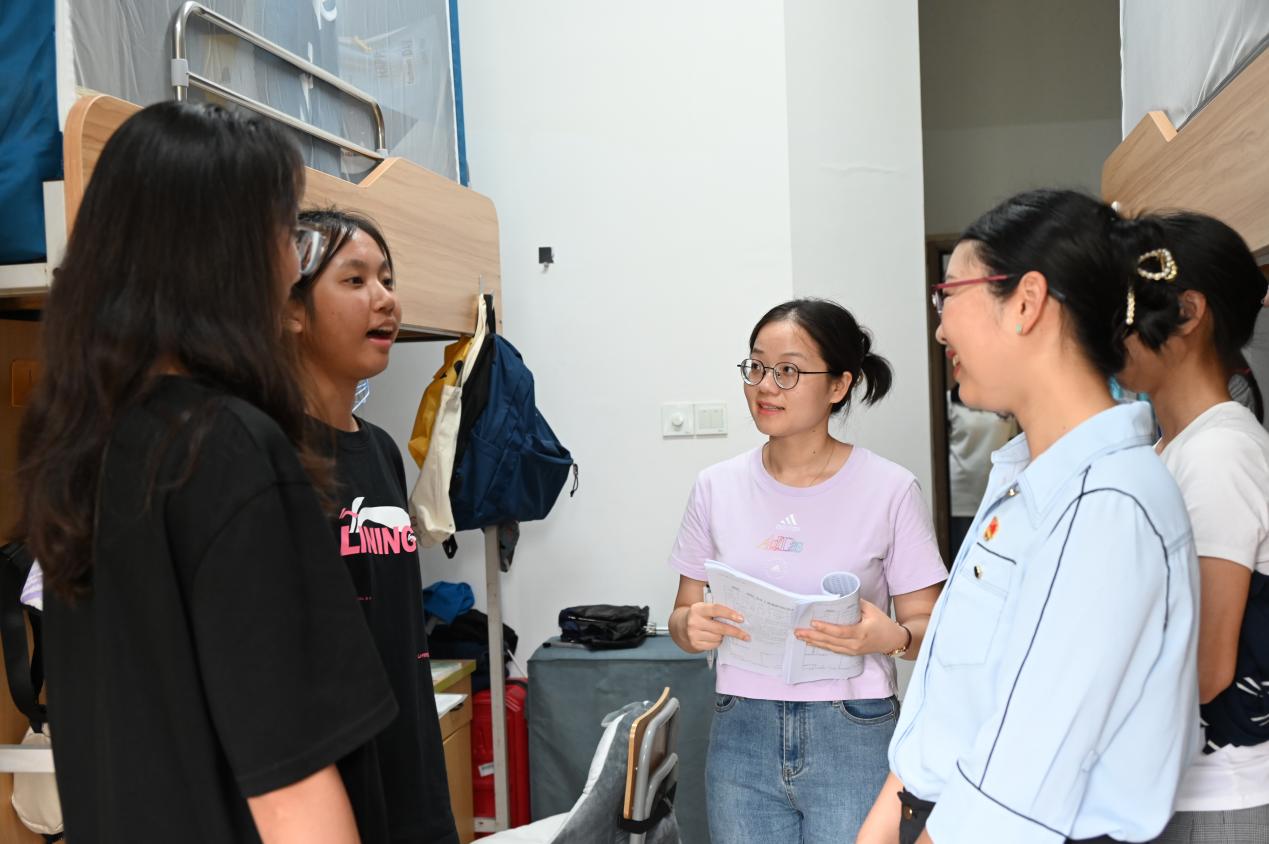 金秋已至,热情不减,期盼已久,新闻传播学院迎来了2023级新生。为了深入了解新生的思想动态和学习状况,增进师生情感交流,秉持以生为本的理念,9月26日,新闻传播学院开展新生辅导员走访学生宿舍活动,为闻传学子带来温暖与关爱。此次走访的人员有党委副书记吴成皓老师、社区辅导员陈宇凡老师、以及2023级新生辅导员庄圆老师、田红玲老师、曹汝朵老师。