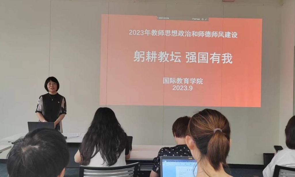 2023年9月21日下午,国际教育学院在四楼会议室召开“躬耕教坛,强国有我”教师思想政治和师德师风建设月动员会,会议由学院办公室主任张文静主持,学院全体教职工参加会议。