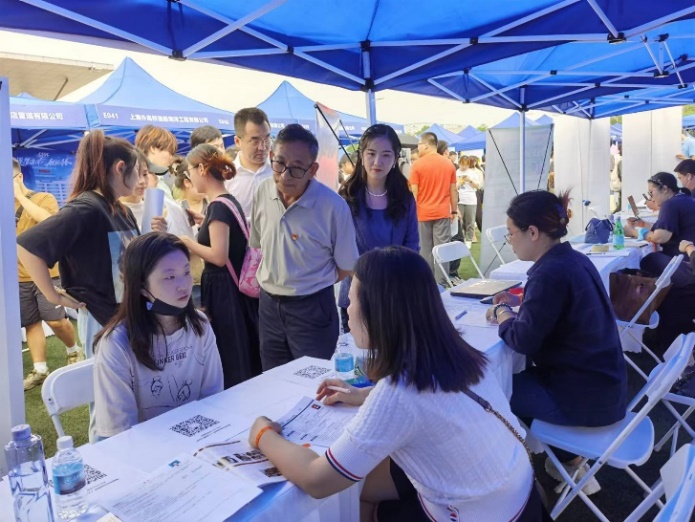 为更好实现校企对接,扩大大学生就业选择权,助力同学们提早迈出高质量就业的“第一步”,2024届上海高校毕业生秋季校园招聘会于9月26日在上海建桥学院顺利举办。此次招聘会涉及豫园珠宝、禄有缘珠宝、璞星珠宝、盛时钟表等企业,招聘岗位众多,求职者接踵而至。