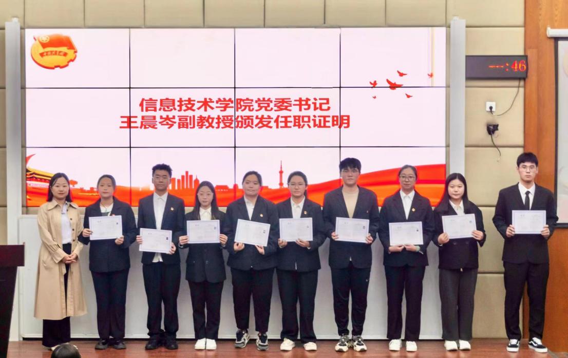 2023年10月16日,信息技术学院团委学生会在三教222召开了以“学思践悟增才干,共筑青春新篇章”为主题的第十届换届大会。出席本次大会的领导老师有院党委书记王晨岑、院分团委书记赛孟其,以及第九届和第十届院团委学生会干部。大会由学院分团委副书记陈星主持。