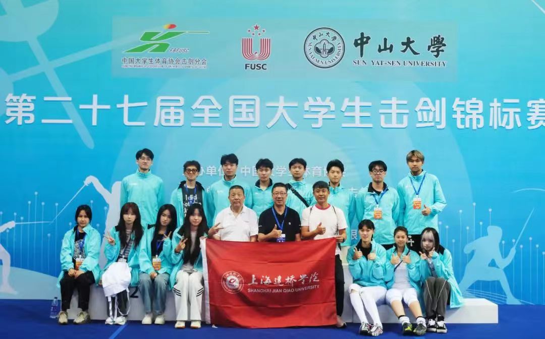 2023年10月19日,第二十七届全国大学生击剑锦标赛经过五天的激烈角逐落下帷幕,在岳志强教练的指导下,建桥学子顽强拼搏、奋勇争先,最终获得一金三银三铜的好成绩。来自于21级空乘专业的王倩倩同学一路过关斩将,荣获女子佩剑个人冠军。
