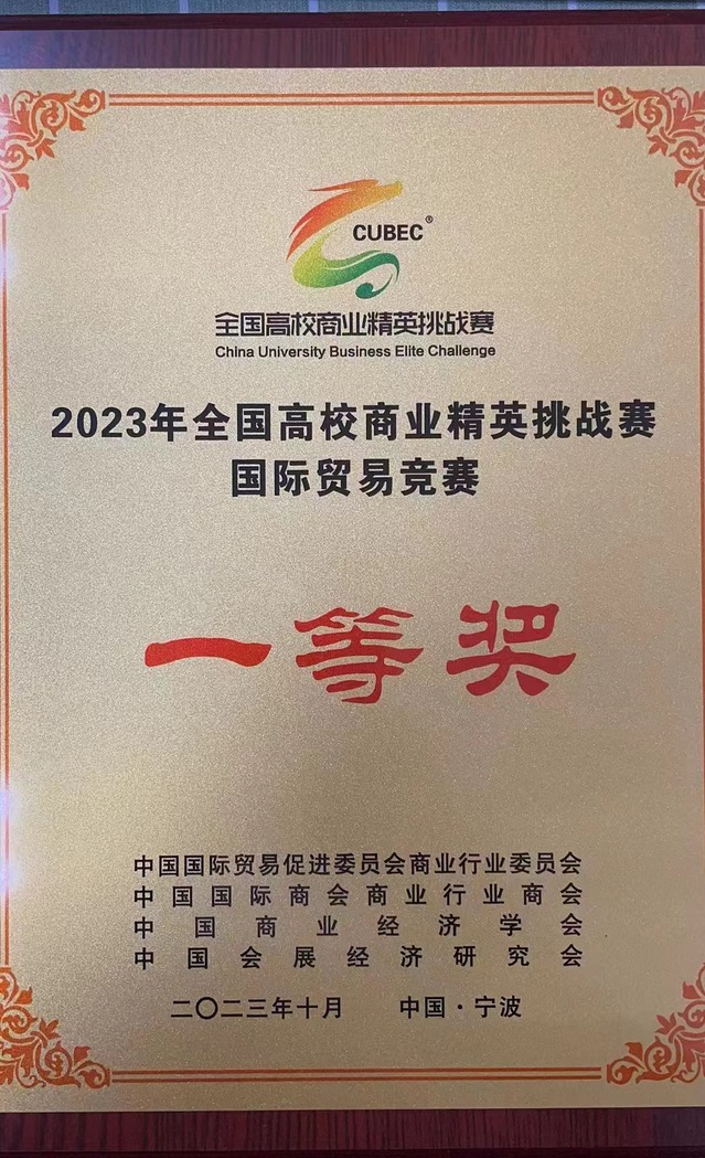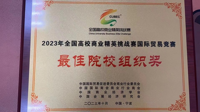 第十三届全国高校商业精英挑战赛国际贸易竞赛(国际贸易业务模拟赛道)总决赛于2023年10月19日至10月23日在宁波国际会展中心举行。商学院国际经济与贸易系主任刘晓辉,教师高中理,刘美霞和王甜甜带领两支队伍前往宁波参赛。经过激烈角逐,我校两支队伍分别获得一等奖和二等奖,我校获得本次竞赛的“最佳院校组织奖”。