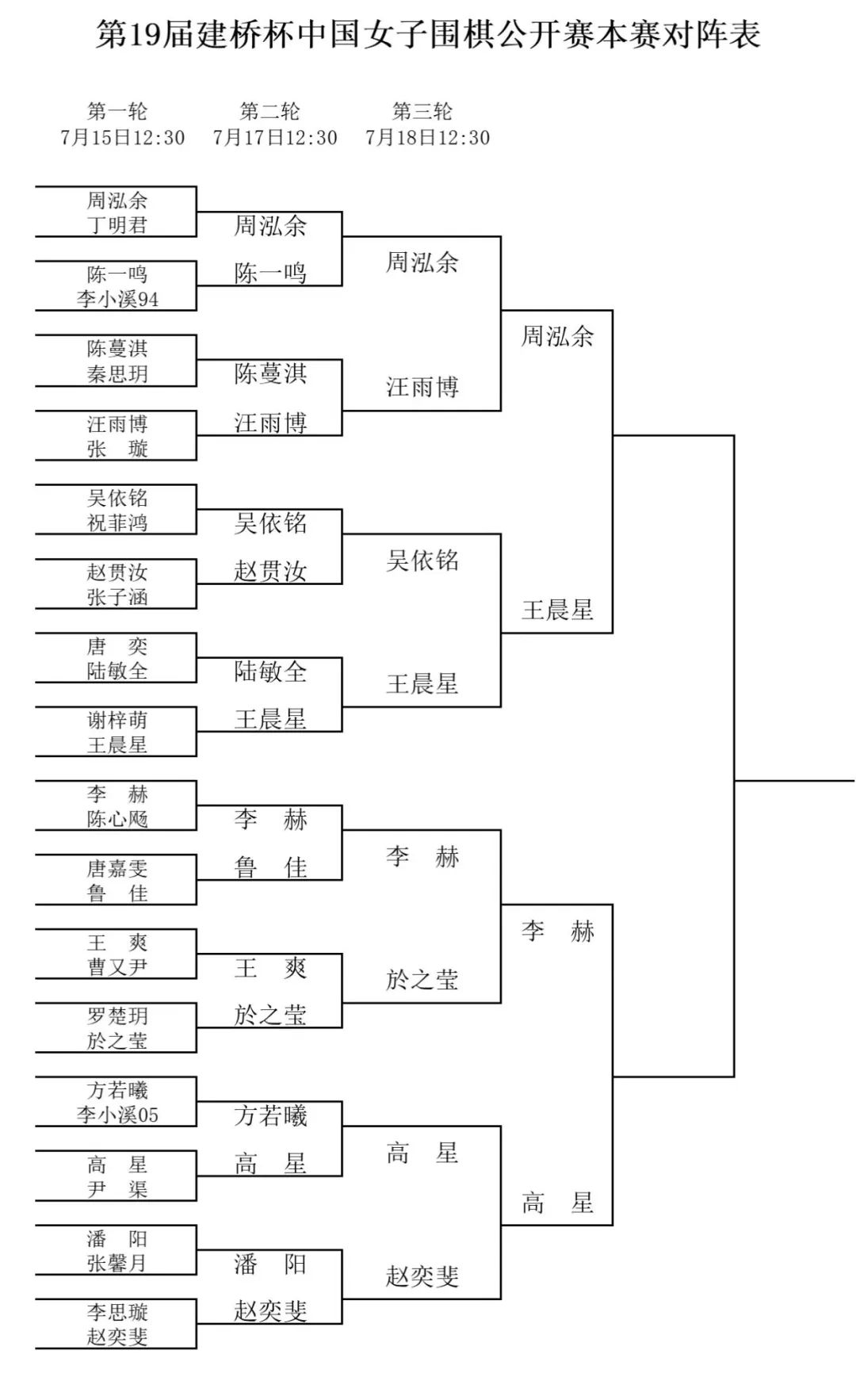 11月6日中午,第19届建桥杯中国女子公开赛4强战在上海建桥学院进行,最终李赫继2016年后再次进决赛,王晨星继2012、2013、2018年后第4次进入建桥杯决赛。