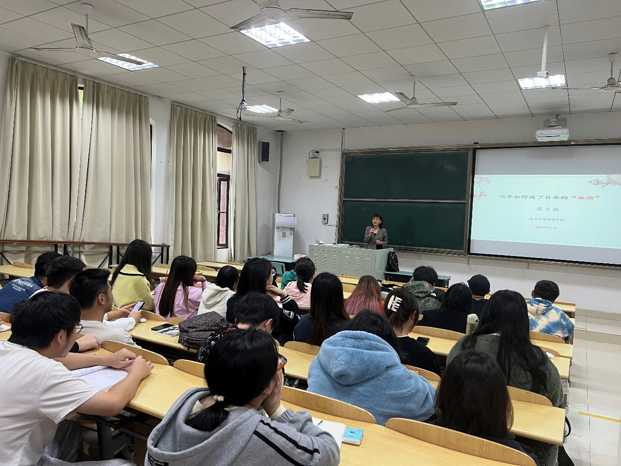 11月9日下午,职业技术学院商务日语专业的“上海日语名师进课堂”系列讲座26《汉字如何成了日本的“麻烦”》在上海建桥学院三教118顺利举行。