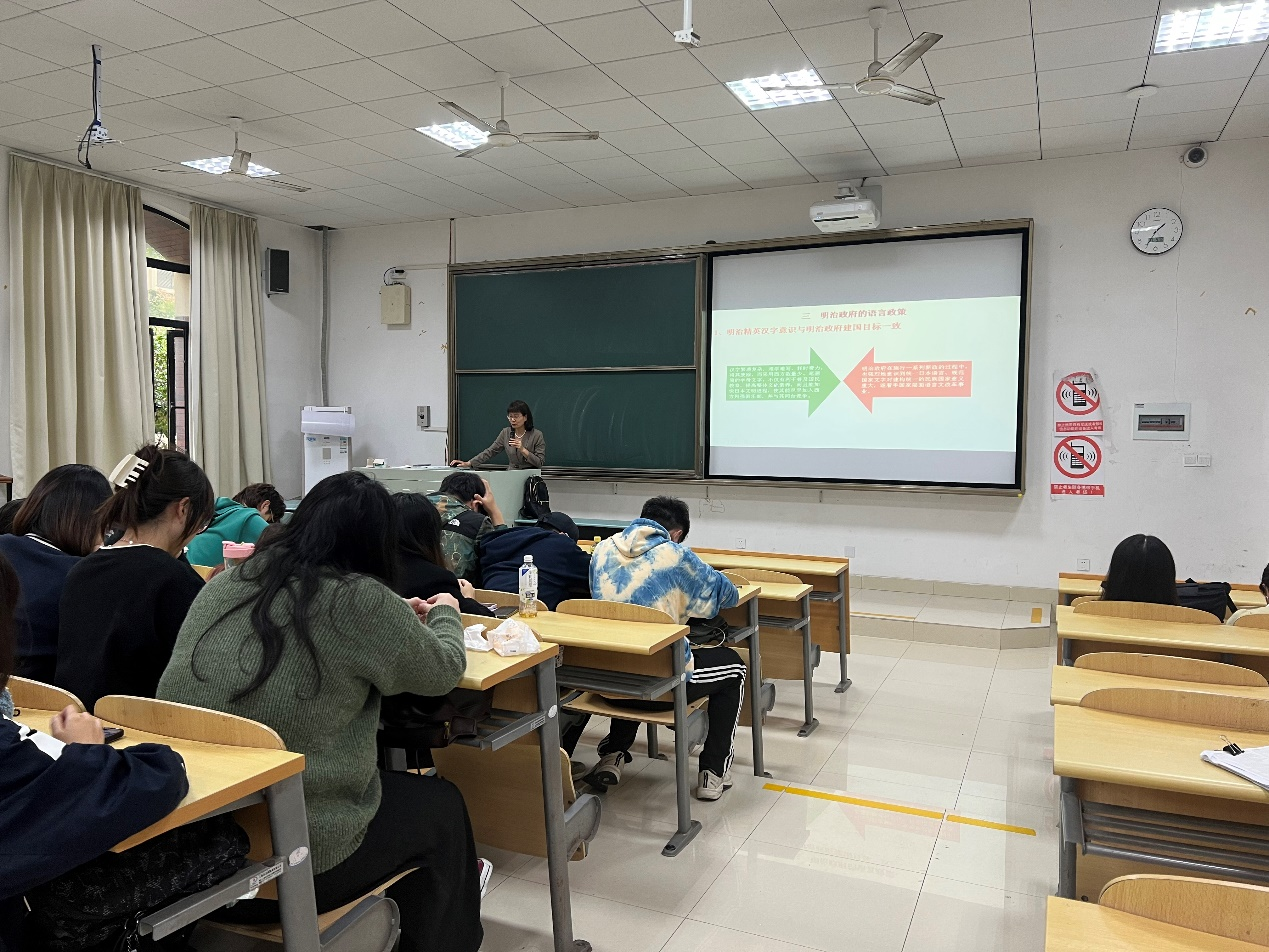 讲座中,陈月娥教授以两篇报道中的汉字的异同引出话题,引发了同学们的思考,继而以翔实的数据,生动的事例和风趣幽默的语言从明治初期废除汉字论的兴起,讲到甲午战争后废除汉字论的高涨,再讲到明治政府的语言政策规划,深入探究了汉字成为日本的“麻烦”这一文化现象产生的过程和原因。整场讲座紧扣日本学术界的“废汉论”这一主题,思路清晰,叙述层次分明。陈教授表示,今后还要再跟大家讲一讲与“废汉论”相对立的“拥汉论”这一论调。此外,陈教授还跟学生们进行了亲切的互动问答,学生们感到受益匪浅。