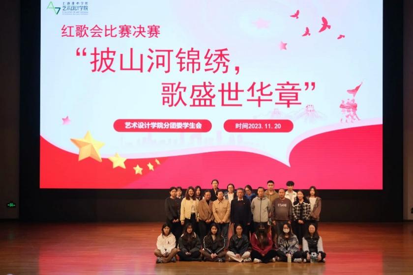 为深入学习贯彻党的二十大精神,培养大学生爱党、爱国、爱社会主义情怀,唱响红歌,弘扬正气,2023年11月20日,艺术设计学院在大礼堂举办“披山河锦绣,歌盛世华章”红歌会决赛。本次大赛出席的有艺术设计学院党委书记周智明、党委副书记王丽佳,艺术设计学院环境设计系教授刘绘中,艺术设计学院分团委书记王玉珏、分团委学生会指导老师江梦婷及各年级辅导员,分团委学生会成员,以及各参赛班级同学。