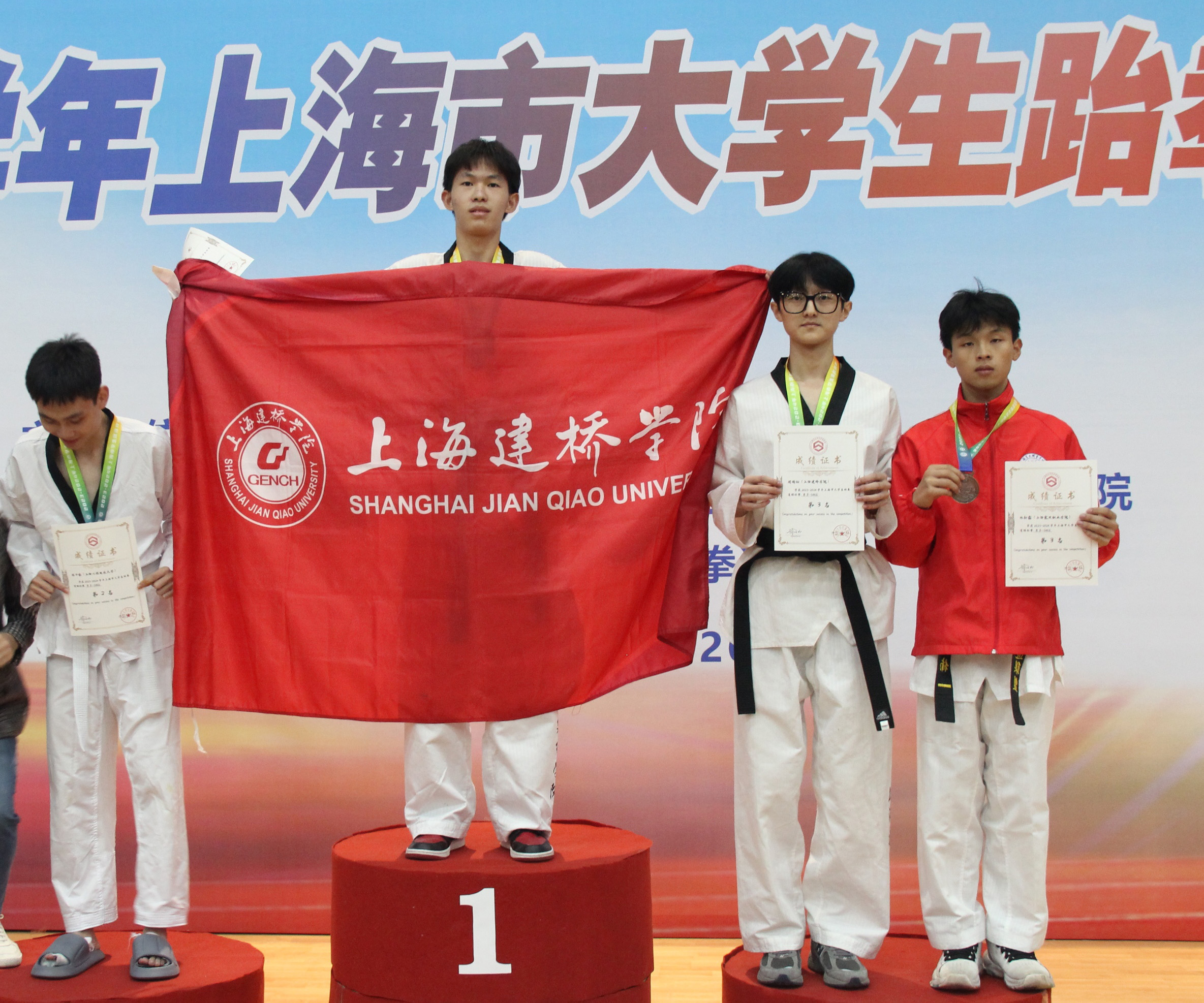 校跆拳道校队成立于2023年2月,此次锦标赛是校队成立以来参加的第一场比赛,这对于跆拳道校队而言是一次巨大的考验,校队队员们用行动和实力在赛场上交出了一张满意的答卷。在日后的训练和竞赛中跆拳道校队会更加认真努力,争取在更多比赛和更高级别的竞赛中摘金夺银,展现建桥学子风采。
