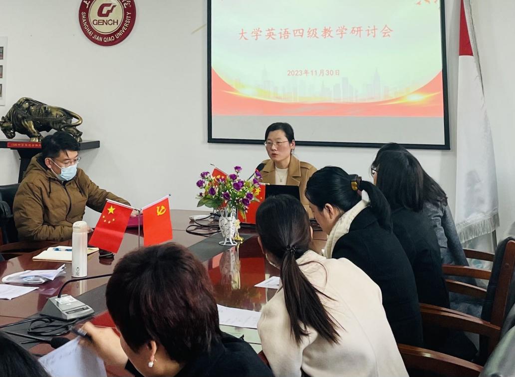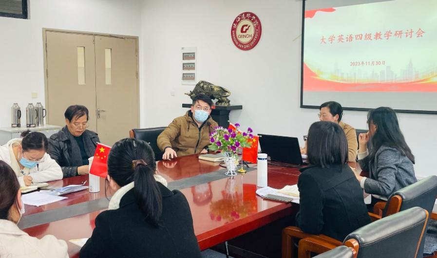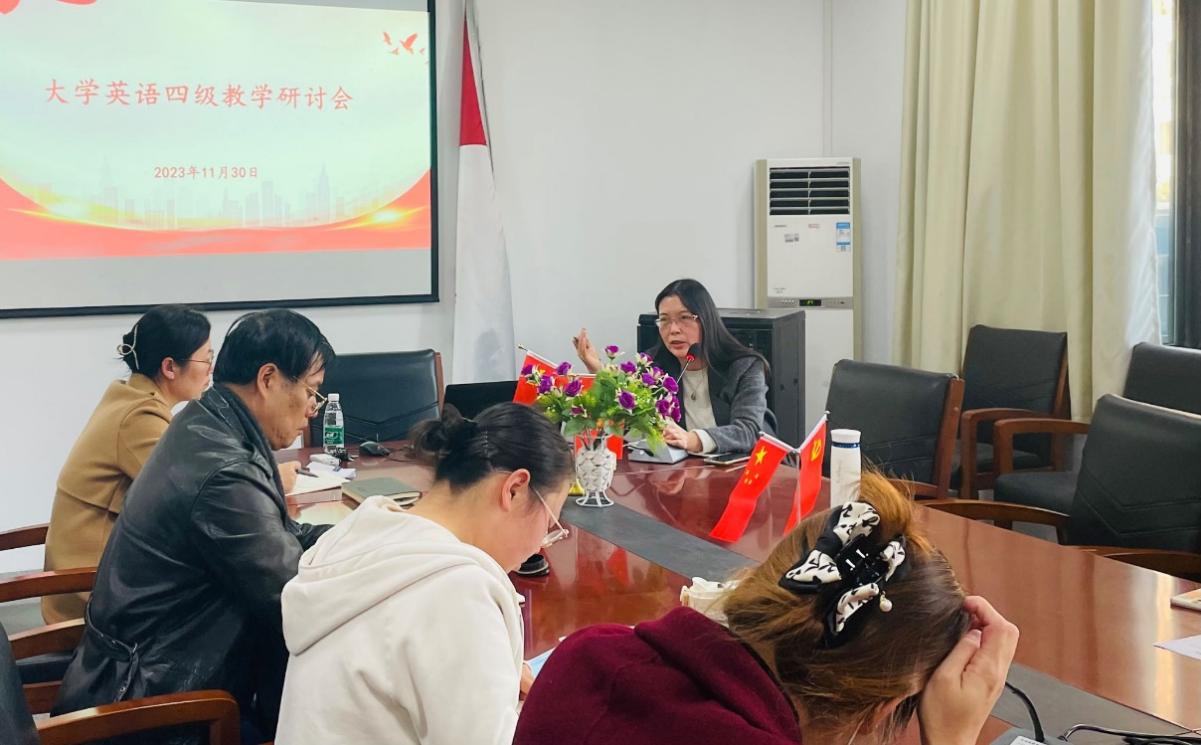 为提高大学英语教学质量,提高大学英语四级考试通过率,外国语学院大学英语部于11月30日下午1点在外国语学院229会议室召开了大学英语四级教学研讨会。教务处副处长孙鹏、外国语学院副院长王海燕出席,大英部正副主任、各课程组组长及大英部全体教师参加会议,会议由大英部主任孔辉主持。