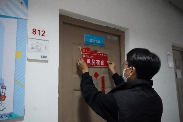 在副书记徐娜的带领下,师生志愿者深入学生宿舍,了解学生学习、生活情况,提供相应的指导与帮助。同时,为了展示党员风采、弘扬党员精神,学院对党员宿舍进行授牌表彰,督促学生党员时刻牢记党员义务,不忘初心,共同营造一个充满正能量的学习和生活环境,持续发挥党员的先进模范力量。