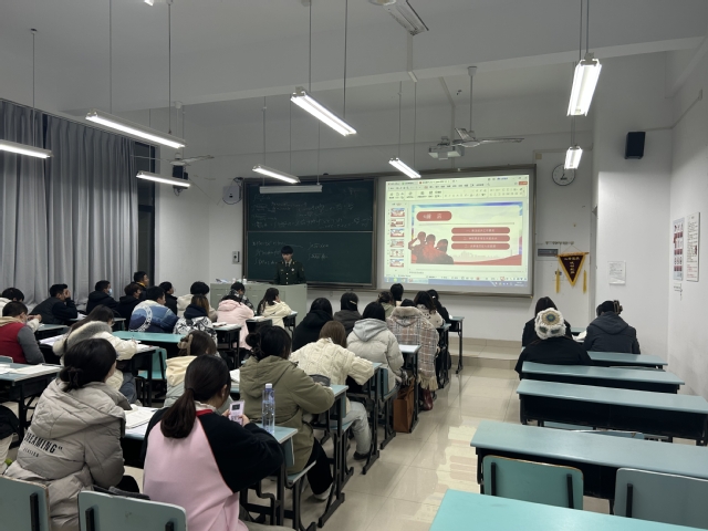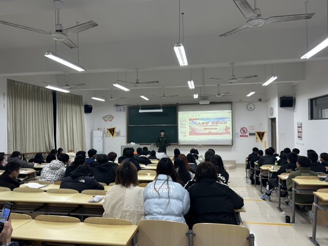 为了积极响应国家号召,鼓励大学生应征入伍,12月4日商学院组织了一批优秀退伍士兵,利用晚自习时间深入各个班级,进行2024年春季征兵宣讲。