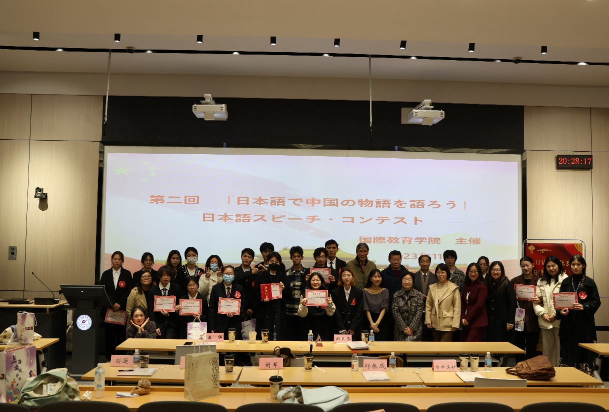为提升学生文化自信和外语语言素养,在故事里读懂中国,培养用日语讲中国故事的能力,用日语展示丰富多彩、生动立体的中国形象,11月30日,国际教育学院在三教220智慧教室举办第二届“用日语讲中国故事”演讲比赛。此次活动邀请学院院长梁月泉、党总支书记周英芬、副书记高祺参加,校内外中日5名专家作为评委。
