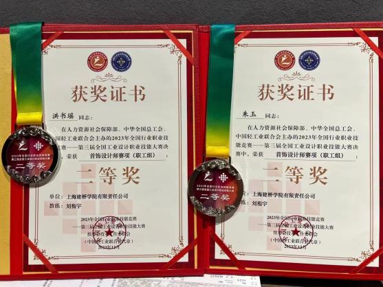 2023年11月30日-12月6日在四川宜宾举办,由人力资源社会保障部、中华全国总工会、中国轻工业联合会共同主办的为期6天的全国行业职业技能竞赛暨第三届全国工业设计职业技能大赛圆满成功,全国27个省(区、市),2000多名选手通过参加省级初赛的层层选拔,最终遴选600余名选手征战全国决赛。我校珠宝学院教师朱玉、洪书瑶荣获首饰设计师赛项全国二等奖及全国轻工技术能手称号。
