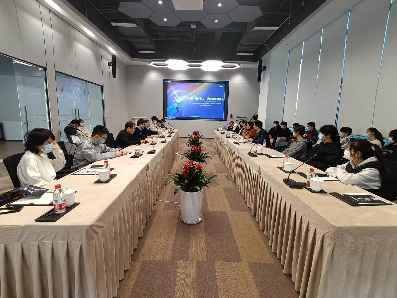 参观结束后,双方在会议室进行了简单的交流。吴兴贵总经理首先对学院师生的来访表示欢迎,并详细介绍了达闼机器人的发展历程、核心技术和市场应用情况。他表示,达闼机器人始终致力于推动人工智能和机器人技术在工业和服务领域的应用,希望与学院建立紧密的合作关系,共同推动相关领域的发展。