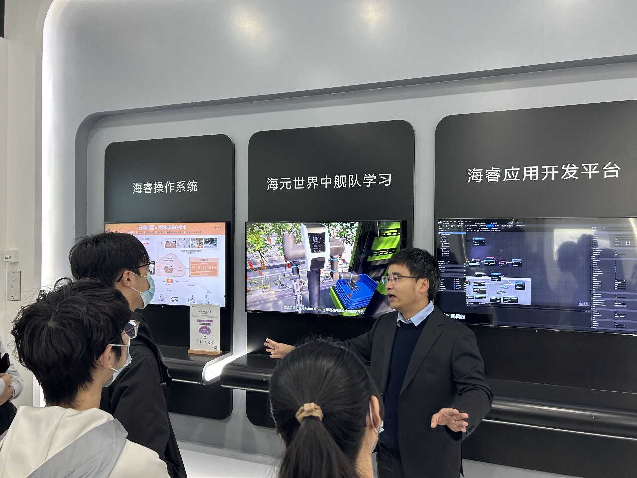 达闼机器人有限公司华东区域总经理吴兴贵、资深产品解决方案总监石海华、教育产品线产品经理章鑫进行了热情的接待。在他们的引导下,师生们首先参观了Ginger、GingerLite系列配送机器人的展示区。这些先进的机器人展示了在自动化配送、人机交互以及云端机器人架构与核心技术等方面的强大能力。同学们对这些机器人的运行原理和技术展现出了浓厚的兴趣,纷纷向现场的技术人员进行咨询。