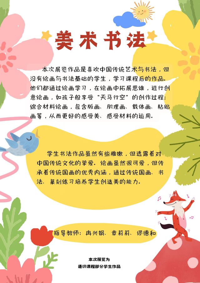 展演活动由两部分组成,一部分是学生的书法绘画作品,在大礼堂展厅展示,这些作品都是出自没有绘画书法基础,但选修了书法绘画课程后学习的作品。虽然显得稚嫩,青涩,但也是学生艺术兴趣与艺术能力的表现,是中国优秀传统文化的学习和传承,体现了我校开设艺术教育课程的初步成果。