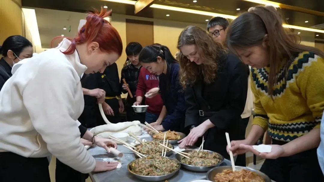 活动当天,南三桃源餐厅里张灯结彩,洋溢着喜庆的氛围。来自不同国家和地区的师生们纷纷化身为勤劳的小厨师,手里拿着饺子皮和馅料,认真地包着饺子、大家互相学习交流,共同分享着包饺子的技巧和经验,现场师生们充分品尝中华美食,交流着饮食文化。
