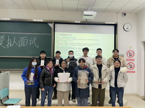 通过前期班级内部的竞争,最终选出了4家优质公司,由唐宇翔等9名学生担任公司的HR角色,并选出了仇心悦等9名学生担任求职者,求职者们根据应聘岗位准备了简历和自我介绍,针对不同的职位进行了充分的准备。面试官根据简历和自我介绍,提出各种与职位相关的问题,考验求职者的应变能力和综合素质。学生在整个过程中,非常的投入,体现了很好的学习积极性,加强了学生学习的热情,也真正学习到了相关课程知识内容。