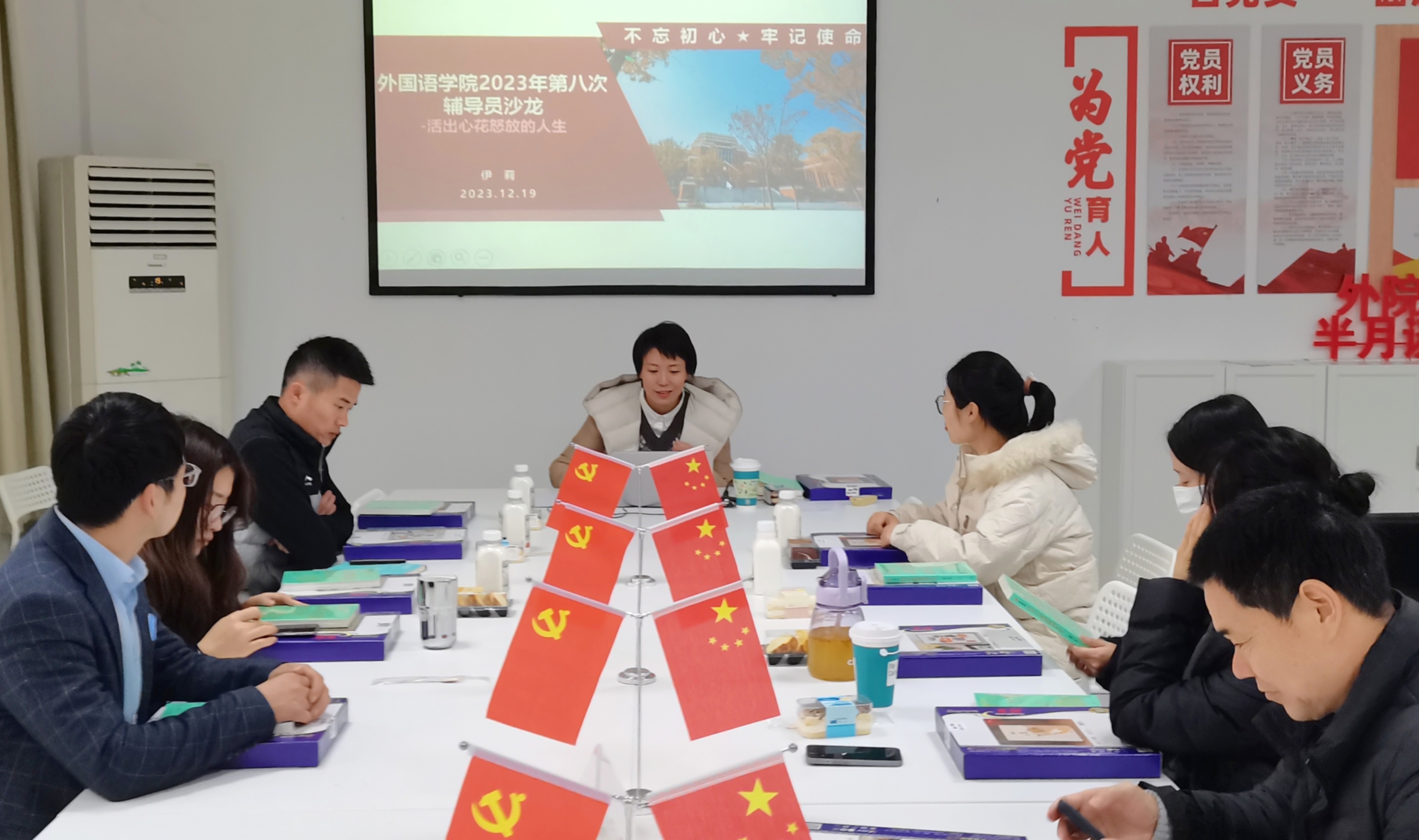 为进一步加强辅导员队伍建设,搭建辅导员学习交流平台,不断提升辅导员职业素养和业务水平,12月19日下午,外国语学院召开了2023年度第八次辅导员沙龙,外国语学院党委副书记伊莉和全体辅导员参加本次活动,会议由伊莉主讲。